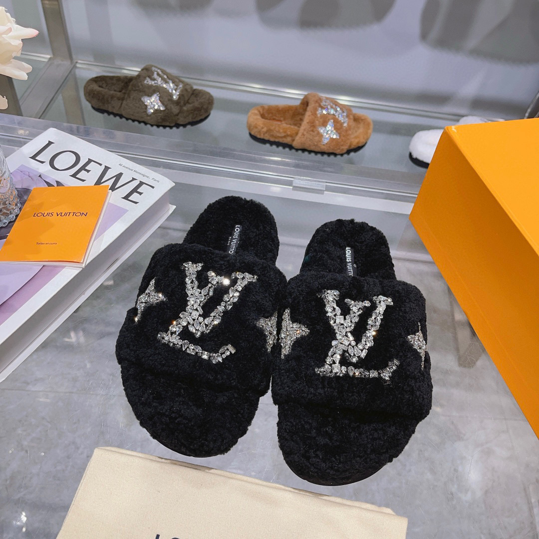 Louis Vuitton Diamond Fur Slippers’Women