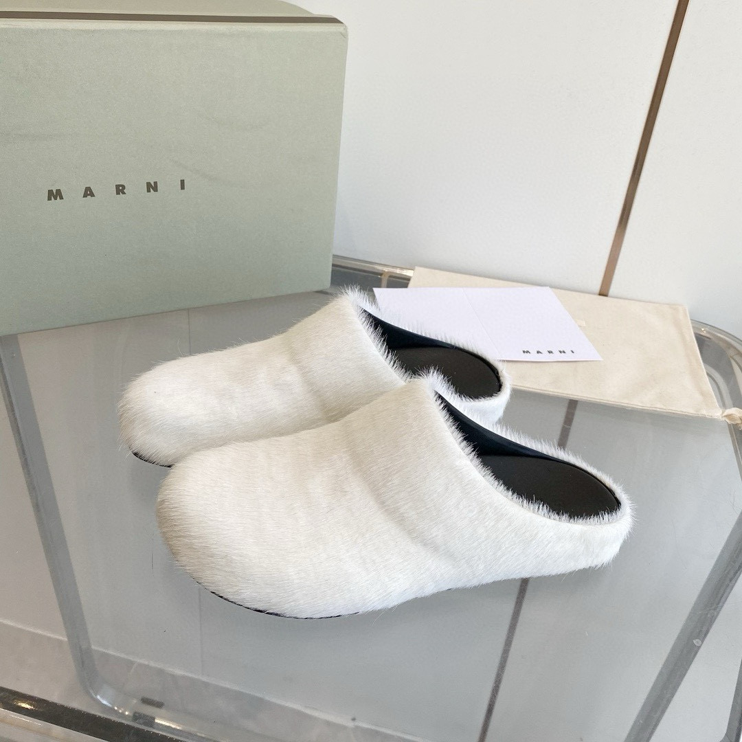 Marni Long Haircalfskin Fussbett Sabot White